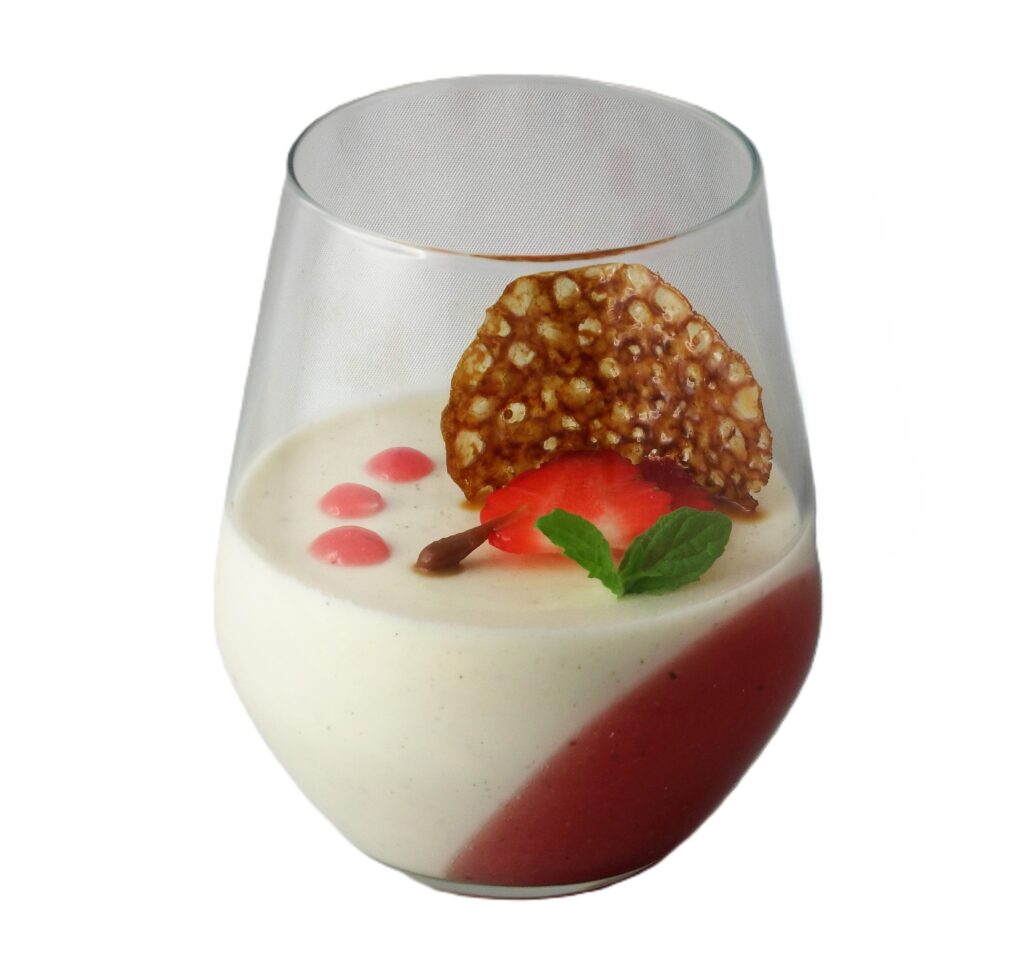 Wir passieren sie durch ein feines Sieb, schmecken sie bei Bedarf mit Salz ab und servieren sie mit Mascarpone-Nocken.