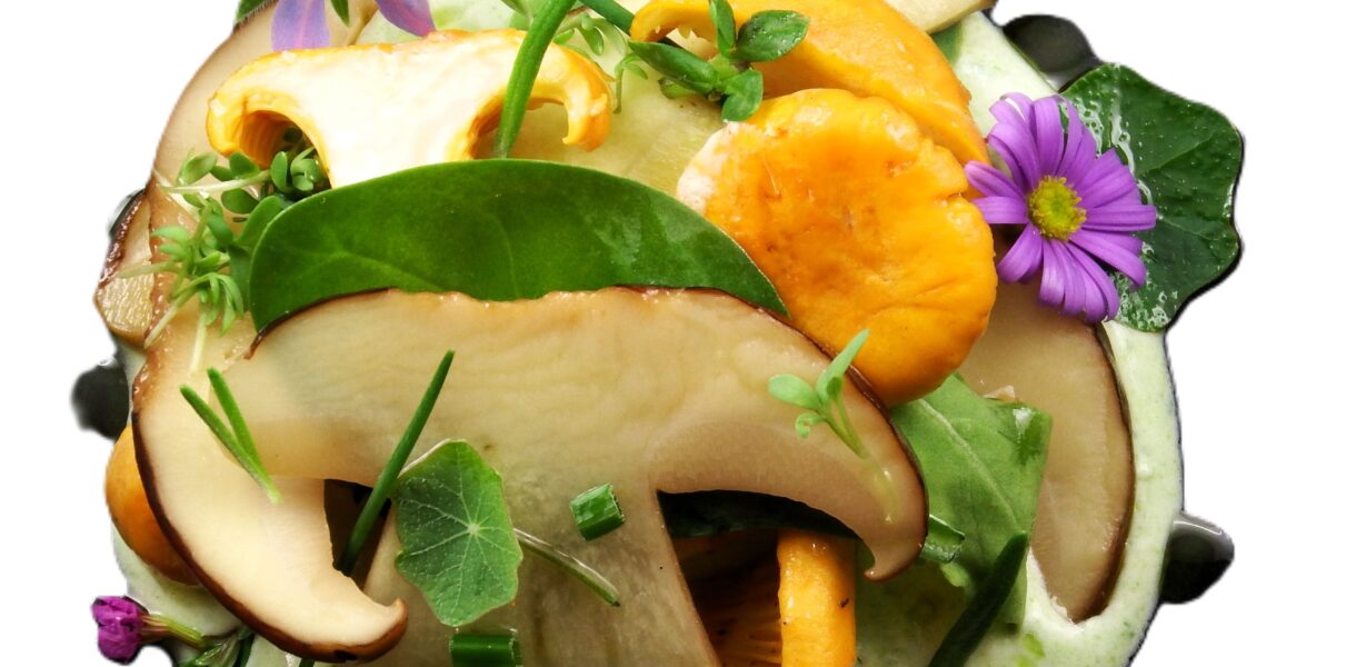 Waldpilzsalat mit Wildkräutersauce